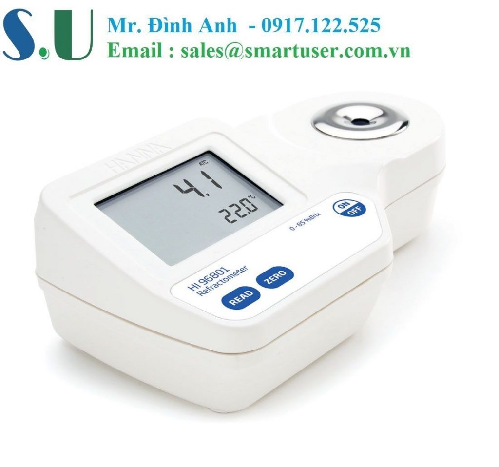 HI96801 là khúc xạ kế cầm tay chuyển đổi chỉ số khúc xạ của một mẫu thức ăn theo % Brix. Chuyển đổi này được dựa theo Sách Phương pháp ICUMSA (Ủy ban Quốc tế cho các phương pháp thống nhất của đường phân tích) về những thay đổi trong chỉ số khúc xạ với nhiệt độ trong một phần trăm theo trọng lượng dung dịch sucrose. HI96801 lý tưởng trong phân tích các loại trái cây, nước tăng lực, bánh pudding, sữa đậu nành, nước trái cây, mứt, mứt cam, mật ong, thạch, súp, đậu phụ và gia vị. HI96801 dễ dàng sử dụng để đo đường trong mẫu thực phẩm hoặc trong phòng thí nghiệm.
